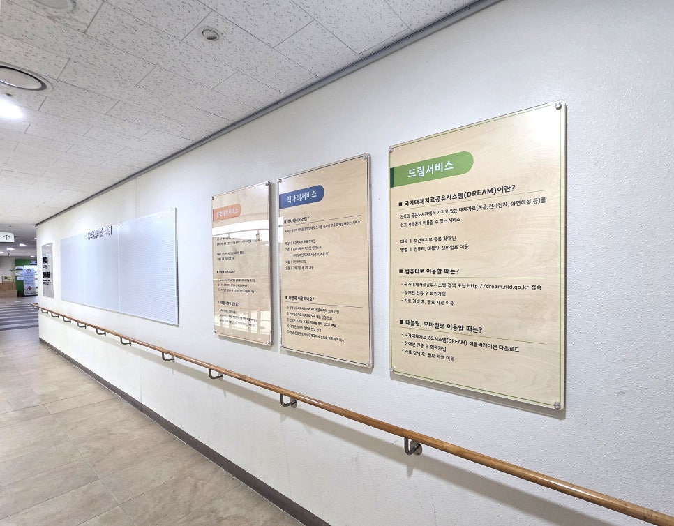 한마음점자도서관 방염자작나무 아크릴 게시판, 아크릴홀더 게시판, 타공 게시판 설치사진