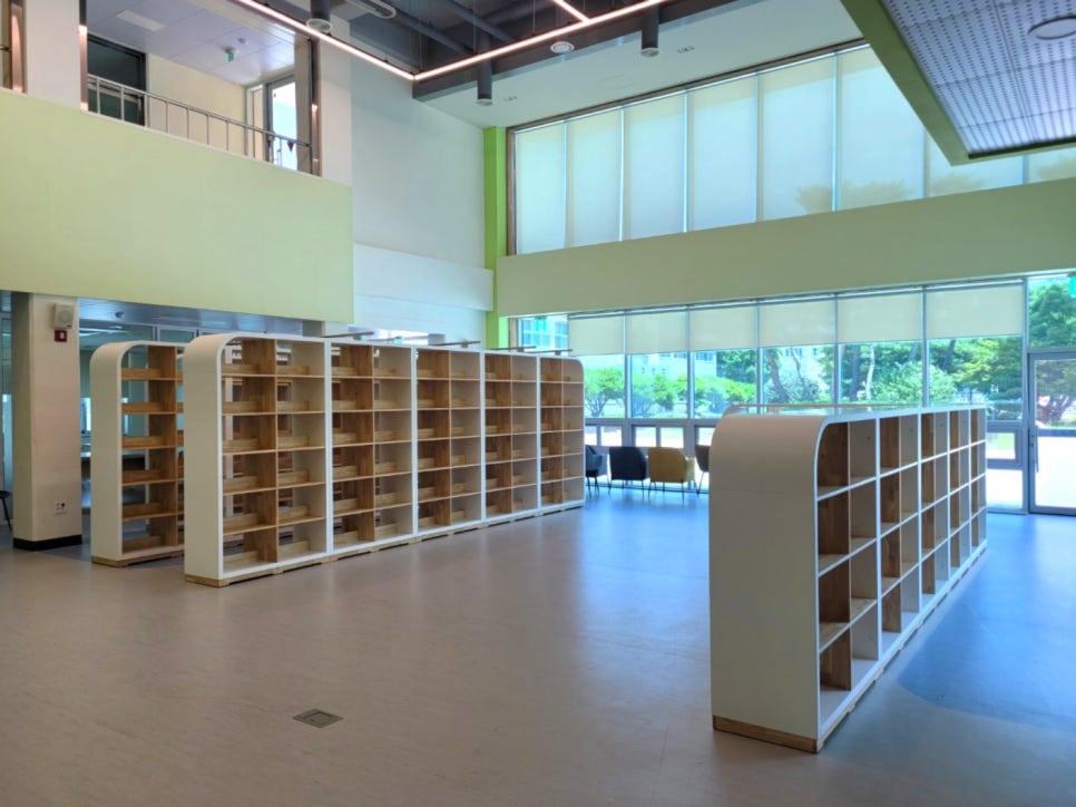 호매실도서관 어린이자료실 자작나무 벽면 디자인 구성 설치사진(방염 자작나무)