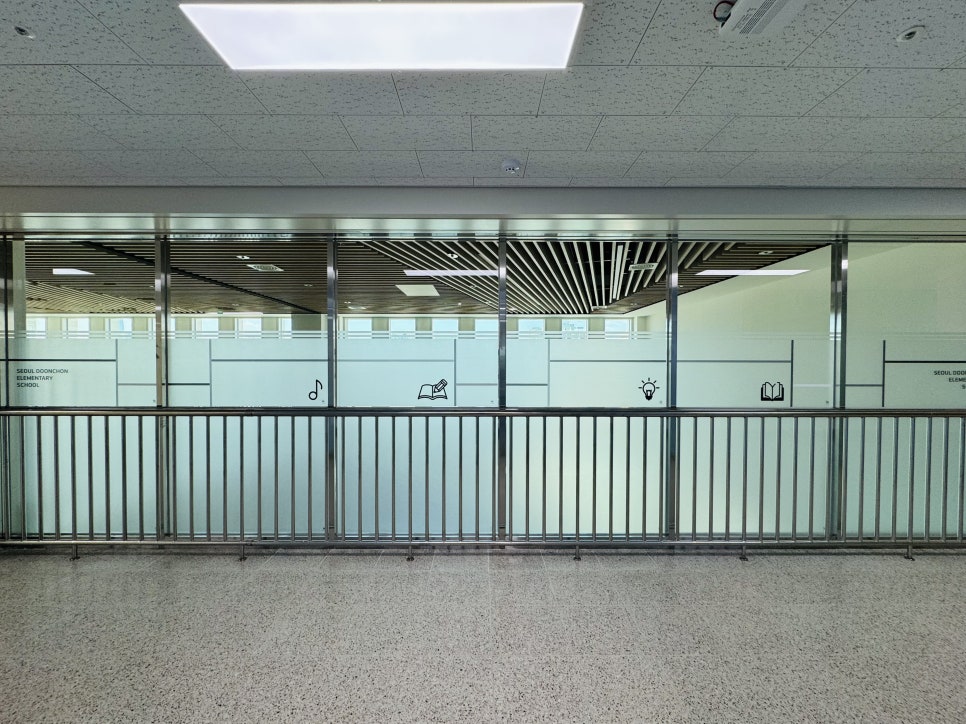 서울둔촌초등학교 교실, 시청각실 유리 창문시트 설치사진(엠보시트지)