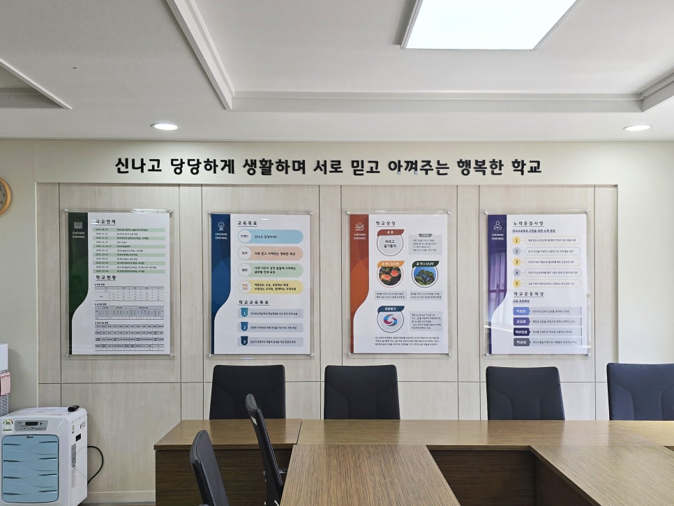 신당고등학교 교표 디자인, 교장실 아크릴 게시판 설치사진